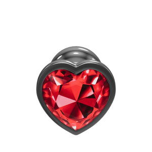 Cheeky Charms - Gunmetal Metal Butt Plug - Heart - Dark Red - Small