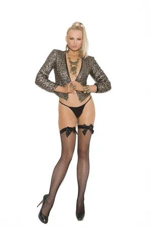 Fishnet Thigh Hi With Back Seam and Satin Bow - Black